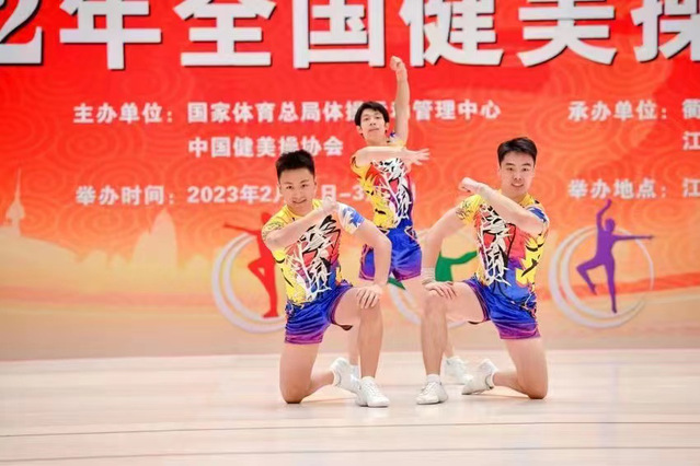 据悉,今年夏季即将毕业的2019级学生刘长凯、蒋佳源、韩浩在2019年秋季入学,入学便参加了健美操队训练,站上赛场就是他们的心愿和目标。赛后刘长凯对赛事谈了感想:历时四天的全国赛已经落下帷幕,感谢赛事的举办,学校领导的支持,教练员潘老师、贾老师的付出,让我有了一次难得又难忘的学习和实践机会。回想这四天,应了平时训练时潘老师常说的一句话:纸上得来终觉浅,绝知此事要躬行。我们平时的训练和备赛,整个流程是系统的、科学的、有据可依的。体能、力量、柔韧、以及成套的完成、反复的叮嘱与强调,因为这些正是模拟赛场的无缝接轨,更是制胜的法宝之一。