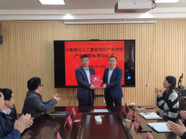本站讯(数学与计算机科学学院 供稿)为更好推进大数据与人工智能现代产业学院建设,深化校政企产教研融合,进一步提高人才培养质量,3月15日上午,数学与计算机科学(软件服务外包)学院在该院会议室举行大数据与人工智能现代产业学院产业副院长聘任仪式。知名产业营销实战专家、广东省低碳企业协会副会长、宜春市富硒农业协会秘书长冷跃进,数学与计算机科学(软件服务外包)学院党委书记甘诚智、院长胡红武、副院长何渊仁、党委副书记谢雪军、副院长臧爱彬出席了聘任仪式,该院各科室负责人、系主任及专业负责人参加了聘任仪式。仪式由甘诚智主持。