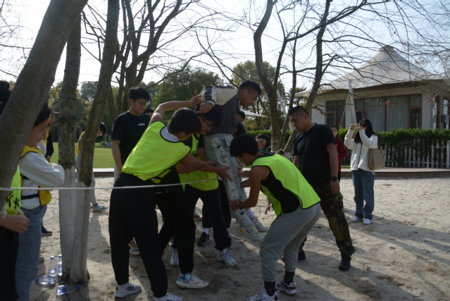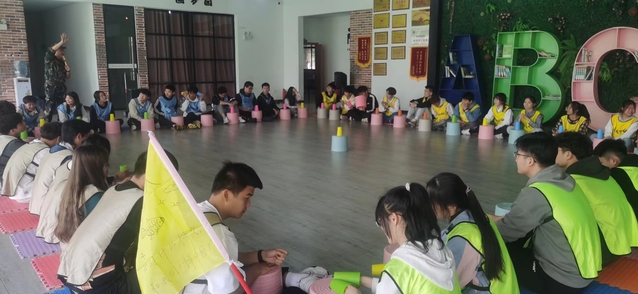 到达目的地前,教练以“吃牛”游戏唤醒了困意浓浓的同学们,一路欢声笑语拉开了此次素拓训练的帷幕。本次素拓训练包括破冰行动、杯子舞、群龙取水、人虫大战、三块砖头、沙滩飞盘、逃离电网和救援城市八个环节。