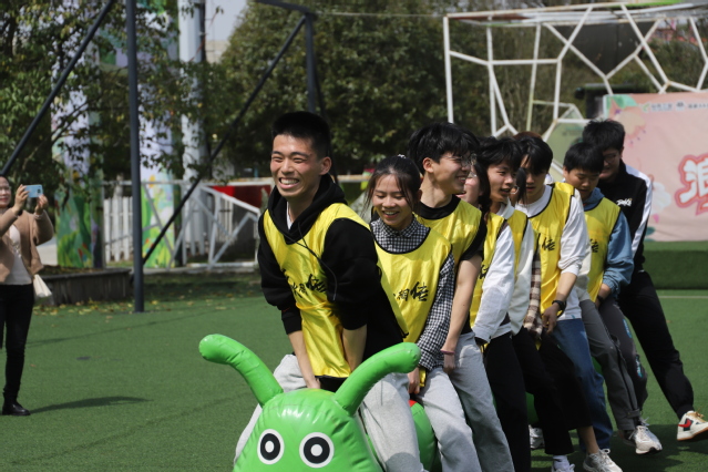待热身完毕,同学们纷纷摩拳擦掌,陆续开展了“杯子舞”“群龙取水”“人虫大战”和“三块砖头”四个项目,其核心在于团队精细合作,提高协同能力。游戏中,各个团队内部分工有序,在短时间内不断优化方案,尝试新方法,解决新问题。从短短的比赛中,同学们学会聆听、拆分执行、适当放弃,促进理论方法的执行与实践。在激烈的比赛之余,场上选手出乎意料的操作时不时也引爆场边观战同学的阵阵爽朗笑声。