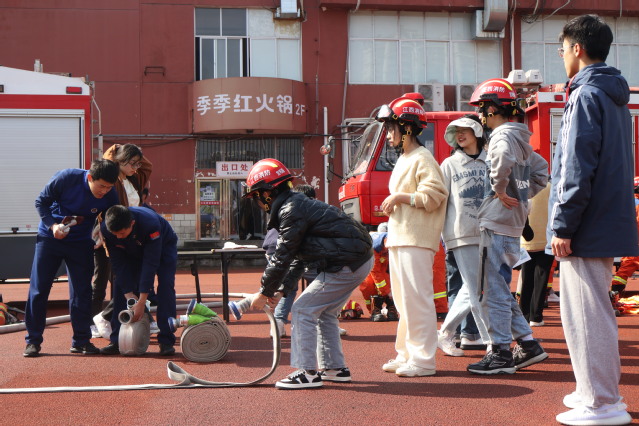 消防体验活动中,同学们在宜春市消防救援支队的消防员的指导下,参与了卷水带,试穿消防服服等,在体验式趣味竞技的形式中提升了消防技能,提高了消防安全防范意识。“在公众号看到活动预热的时候就非常期待,虽然因为天气原因推迟了,但如约而至的不止春日游园会,还有朝气蓬勃的我们。”来自马克思主义学院的李煜瑶说,“游园会不仅仅玩的开心,学的也很开心。传统文化充满了魅力。”