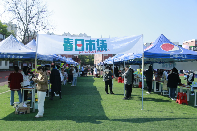 在“春日市集”现场,每位“摊主”都在尽力推销,有的热情吆喝,有的现场绘制。各色商品琳琅满目,绿植鲜花、书签文创、创意好物、生活百货、美食茶饮、手作体验,每一种关于集市的美好想象都在集市汇聚,件件商品款式清新、物美价廉、质朴诱人,很多学生独特创意的“单款孤品”很快就被抢售一空,甚至开启订单预约模式。“今天第一次摆摊,难掩内心的小雀跃。已经有10位客户购买啦,收入150元,买了隔壁摊主的小饰品花了10元……”来自政法学院的辛奕乐分享的摆摊“日记”。