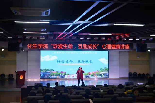 本站讯(学生通讯员 彭翔 王思怡)为提高beat365官网大学生的宿舍生活质量,培养大学生健全的人格和良好的心理素,3月22日下午,化学与生物工程学院于青年大学生活动中心三楼举行以“珍爱生命,互助成长”为主题的心理健康讲座。此次讲座由学生工作处(学生工作部)心理咨询中心教师严蔷薇担任主讲,化学与生物工程学院全体寝室长参加。