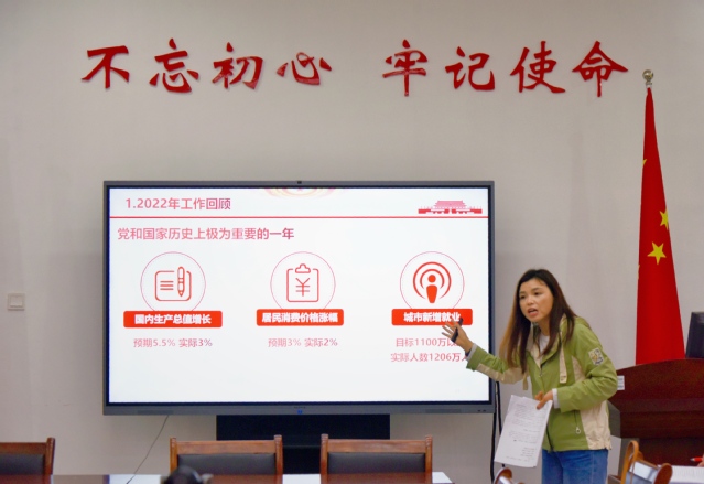 在教学展示环节,李婷博士做主题教学展示,她从“两会来龙去脉、工作报告,民生热点、习近平总书记两会讲话精神和主要看点,重大议题”等方面做了详细阐述。