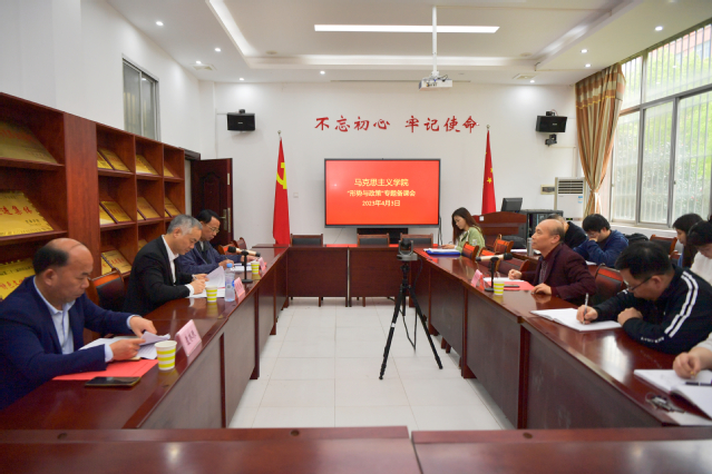 本站讯(马克思主义学院 供稿)4月3日,马克思主义学院“形势与政策”课2023年春季学期第二次集体备课会在院会议室召开,校党委书记、校长曾晓春,校党委副书记胡国瑞到会指导,该院领导班子成员、行政人员、专职教师代表以及“形势与政策”课教研室全体教师参加。备课会由该院党委书记朱向华主持。