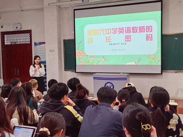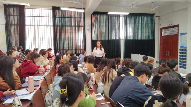 本站讯(学生记者 余梦洁)4月7日下午,外国语学院英语专业校外实践指导老师、宜春实验中学高级教师董文婷受邀莅临beat365官网,面向学生开展中考英语完形填空题型的示范性教学,并主讲题为“新时代中学英语教师的成长密码”的讲座。活动由汪李娟教师主持,2020级英语师范专业全体同学聆听讲座并参与活动。此次活动是外国语学院与教学实习基地产学融合、切实加强学生实践能力的活动之一。