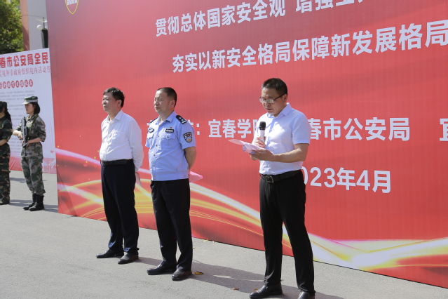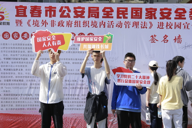 活动上,宜春市公安局国保支队政委应忠文同志进行国家安全倡议宣讲。活动还通过设立宣传展台、发放宣传资料、悬挂横幅标语、师生互动签名、进行知识有奖互动问答活动等方式,向师生宣传国家安全相关法律法规。使其了解维护国家安全是公民的义务和责任,并引导全校师生筑牢思想防线,树立主人翁意识,争当维护国家安全的践行者和捍卫者。