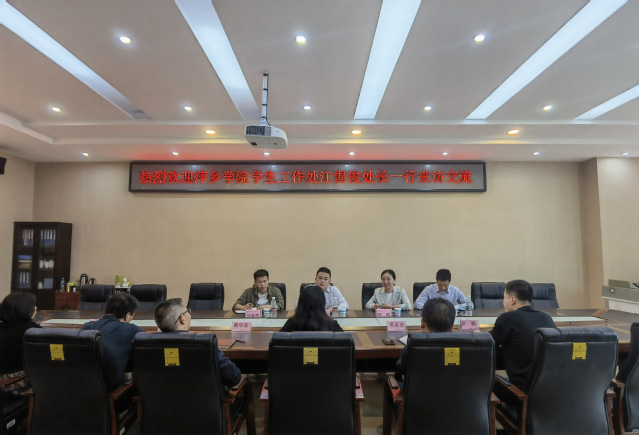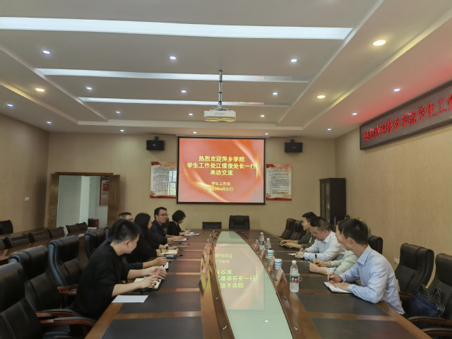 本站讯(学工处 供稿)为交流经验、更新理念、开拓思想,提升学生管理能力,优化学生管理措施,完善学生管理制度,4月20日,萍乡学院学生工作处处长江惺俊一行四人来beat365官网进行考察交流。来访嘉宾与beat365官网学工处同仁进行了交流座谈,座谈会由学工处处长袁群主持,学工处科级以上干部参加了交流会。