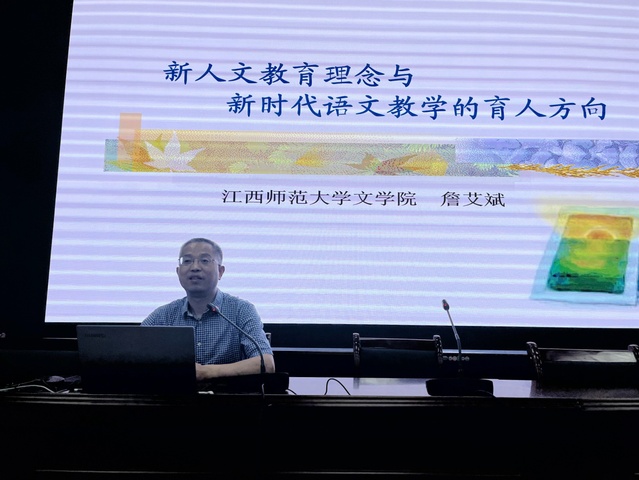 詹院长结合江西省首期中小学语文名师培训、语文教学实际和相关文学作品,从“语文教学育人方向的明确与‘好’的理论主张的形成”“新人文教育理念与语文学科性质的契合”“生命教育:新时代语文教学的根本方向”三个维度阐释了科学教育理念、新人文教育的内涵与目的、实施生命教育的原则与路径。他鼓励语文教师要成为学科素养、课堂教学、研究著述、理论主张俱佳的“四好”名师;指出“语文教育的最高阶段是文学教育,文学教育的理想形态是生命教育”“在语文教学中实施生命教育,是一种更具学科性质的教育,是关于人的教育,是温暖教育、美丽教育”“在生命教育中,最根本的是德性教育”“语文教师需要养成师者德性”“师者氤氲德性光辉,生命教育方成可能。”