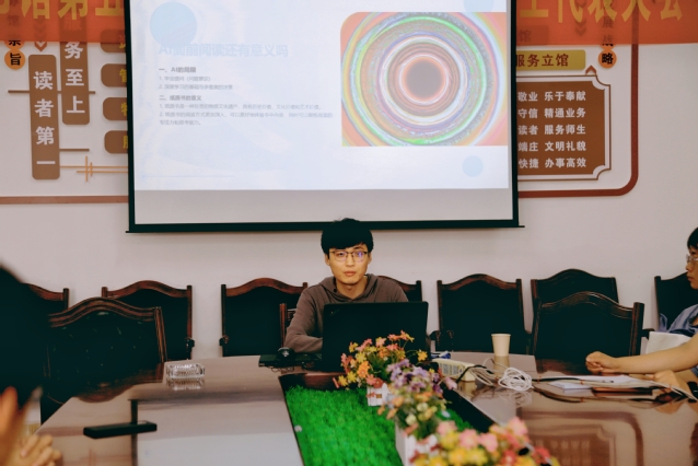 4月21日,图书馆在八楼会议室举办了“沁湖书香”读书沙龙活动。此次读书沙龙,邀请了文传学院的浦晗老师和同学们分享“阅读的意义与方式”。浦老师以前沿的AI技术作为切入点,讲述了先进的科学技术对现代人的阅读形式带来的冲击和改变,并结合自身的阅读经验,妙趣横生地讲解了阅读的意义与方式。在座的同学们也踊跃提问,师生之间进行了良好的互动和交流。