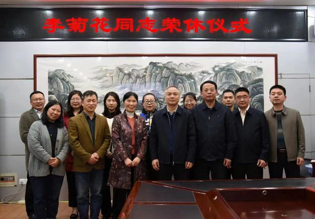 与会人员纷纷发表感言,表达了对李菊花同志衷心的感谢与祝福。胡国瑞高度概括了李菊花同志“好人、好领导、好同事”,并代表学校送上鲜花和慰问金。