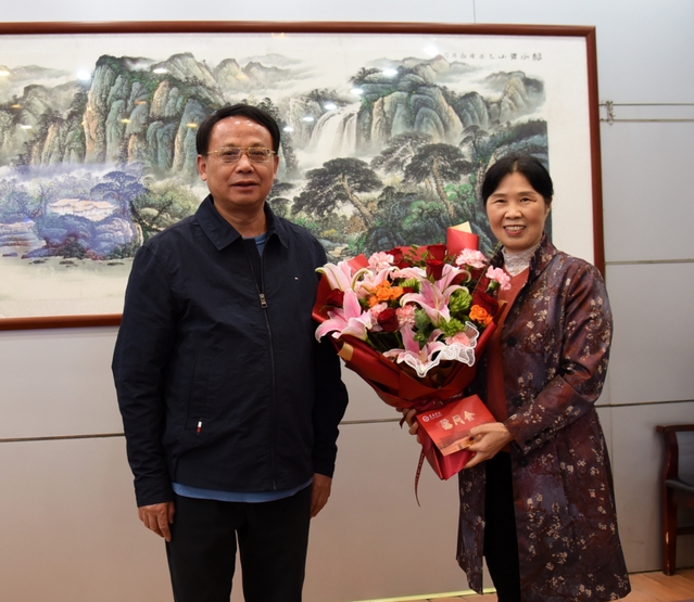 本站讯 (校工会 供稿)4月27日下午,校工会在办公楼第二会议室举行仪式,欢送李菊花同志光荣退休。校党委书记、校长曾晓春,校党委副书记胡国瑞出席仪式,组织部、人事处、科研处、学工处、离退休人员工作处、外国语学院负责人及工会全体成员参加。仪式由校党委委员、组织部部长高茂兴主持。
