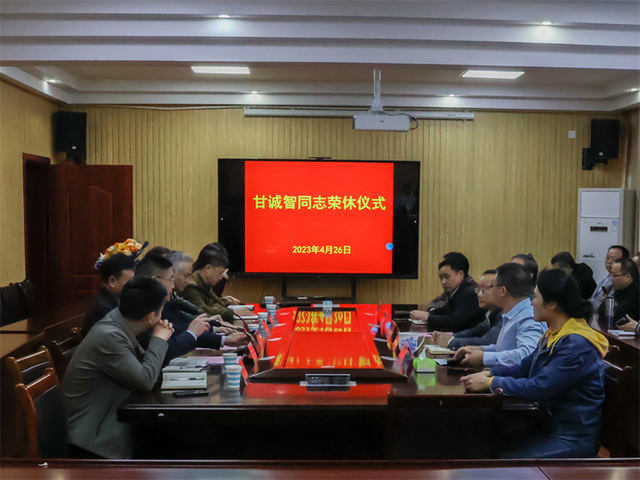 本站讯(学生记者 刘娟强 龙敏露 韩佳兴 欣一行)4月26日下午,数学与计算机科学(软件服务外包)学院在院会议室为光荣退休的甘诚智同志举行了一场温馨的荣休仪式。校党委书记、校长曾晓春,校党委委员、副校长李建军,校党委委员、组织部部长高茂兴,人事处、工会、离退休处部门负责人,该院院领导及部分教师代表参加了仪式。仪式由校党委委员、组织部部长高茂兴主持。