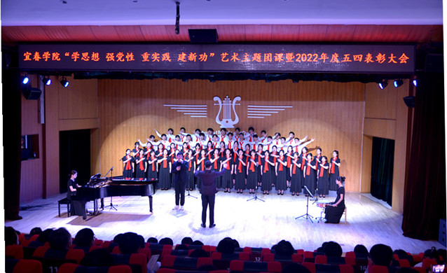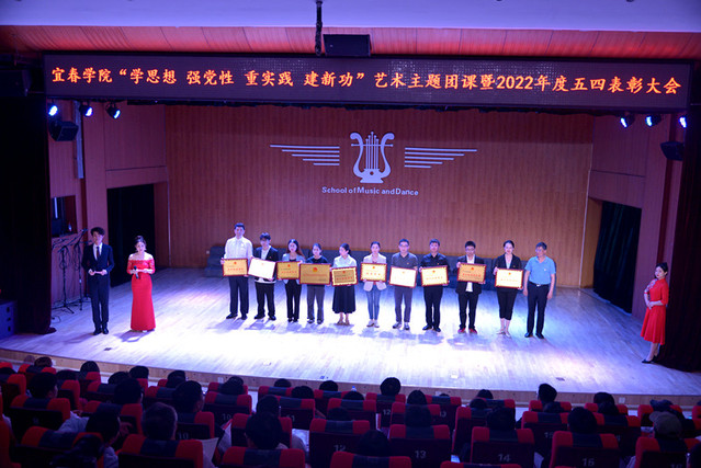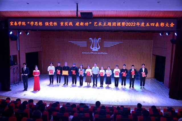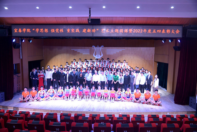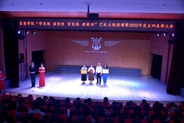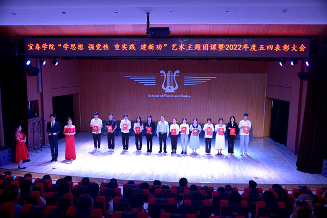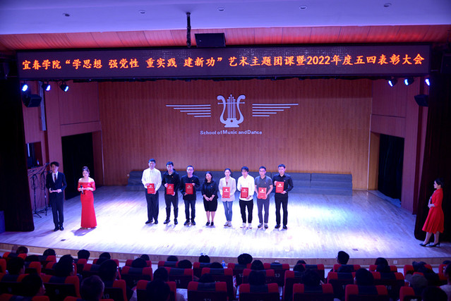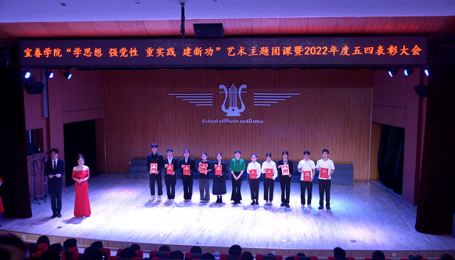 本站讯(学生通讯员 王月 骆依菲 李永琪)在全校上下深入学习贯彻党的二十大精神和开展学习贯彻习近平新时代中国特色社会主义思想主题教育之际,5月6日下午,beat365官网“学思想 强党性 重实践 建新功”艺术主题团课暨2022年度五四表彰大会在艺术楼音乐厅举办。共青团宜春市委书记黄文锋,beat365官方网站党委书记、校长曾晓春,校党委副书记胡国瑞,校党委委员、副校长邱家明出席大会,相关部门负责人、各院基层团委负责老师、团委各科室老师及300余名青年代表参加此次大会。