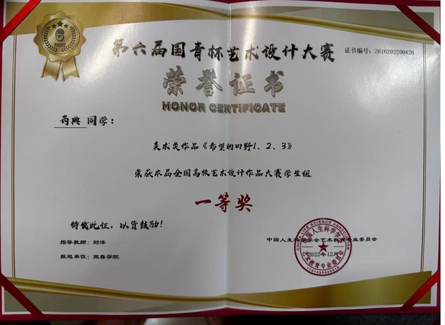 “我一直都想成为一名美术老师,并为之不懈努力着。”芮典报名专业老师积极主动交流、打磨作品细节,获得全国微课大赛二等奖、“国青杯”艺术设计大赛一等奖等。儿时心中播下的那颗名为热爱的种子早已开花结果,“美不是一幅好看的画,也不是一个穿戴华贵的人;美是我们投入深情的生活,乐观自信地绽放着生命之光。美术教育的核心理念与‘术’无关,只与‘美’有关。对我们来说,最好的美育就是,我们可以通过美术教育成为一个‘活在美中’的人,并且能够用美完善自己的生命。”