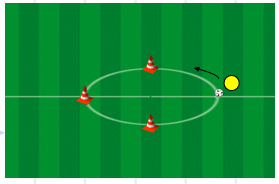 考试方法:场区为11人制中圈。考生从中线起点向中圈弧外进行颠球,不限脚法,球不落地。1/4,2/4,3/4圈处各有一个标志桶,到达该处用手击倒,成绩有效,一圈为满分。每人测试2次,取最好成绩。