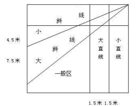 斜线扣球评分:①落点在小斜线区内,有一定力量,2分;