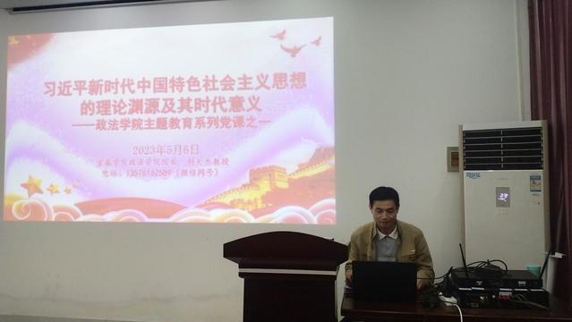 会上,院长刘天杰部署了政法学院近期主题教育相关工作。随后,刘天杰为全院党员教师讲了一堂主题教育党课,主讲的题目是“习近平新时代中国特色社会主义思想的理论渊源及其时代意义”。党课分别从习近平新时代中国特色社会主义思想创立的时代背景,回答的重大课题,包含的主要内容,蕴含的世界观、方法论,彰显的历史地位等方面进行阐述。围绕党课内容,刘天杰强调,必须带着问题学,联系实际学,把理论和实践结合起来,把握其中的立场和观点,切实做到学思用贯通,知信行统一。