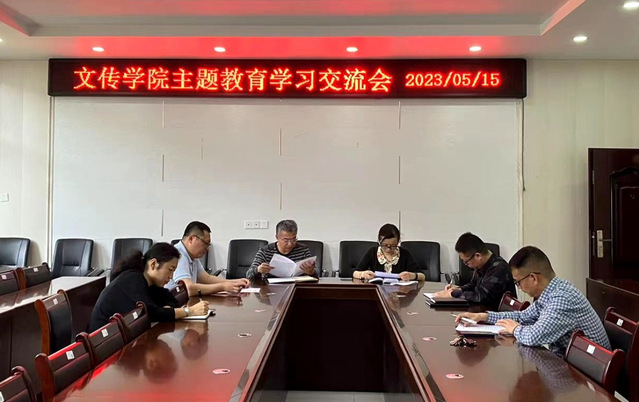 本站讯(学生记者 康爱萍 刘玉坤)为扎实推进深入开展学习贯彻习近平新时代中国特色社会主义思想主题教育,5月15日上午,文传学院党委书记刘建平主持召开主题教育专题学习交流会议。该院院长冷瑾、党委副书记黄国斌及党委班子成员、科室负责人参加了学习交流会。