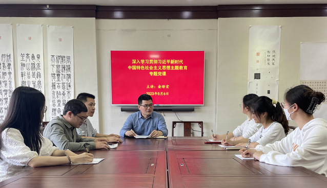 本站讯(书法艺术学院 供稿)5月6日下午,书法艺术学院党支部在科技楼202室召开了党支部党员大会,党支部书记俞燎宏主持并开展了深入学习贯彻习近平新时代中国特色社会主义思想主题教育专题党课,在家教师和学生党员参加了此次集中学习。