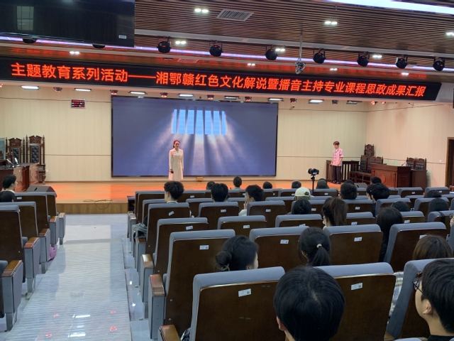 文传学院播音主持教研室主任罗霄老师表示,本次活动的主旨在于深入学习贯彻习近平总书记关于传承红色基因、赓续红色血脉的重要论述,结合思政育人培养目标,在省教学改革重点课题:基于“湘鄂赣”红色文化资源挖掘的播音主持课程思政建设路径的研究与实践——以《播音学概论》为例的依托下,通过实践教学周,理论融合实践,思政知识融入专业教学,呈现播音主持专业课程思政与专业教育有机融合、无缝衔接的最优成果体现。