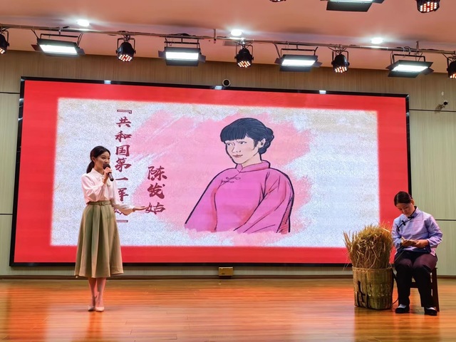 本次展示活动中,播音主持专业同学以分组形式倾情解说了“共和国第一军嫂——陈发姑”“一封穿越烽火的家书”“‘腰缠万贯’的讨米人”等12个红色故事。同学们在解说红色故事中传承与传播红色文化,用红色文化感染与感动观众,让红色基因融入血脉薪火相传。