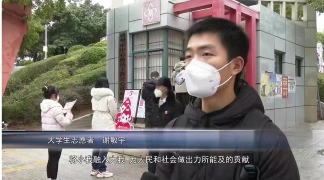 “很多人觉得,做志愿活动会占用学习时间影响学习,但在我看来,这是一个教学相长的事情。在志愿活动中,我的视野变得更开阔,实践能力也得到了锻炼,其次我认为活动也是学习的一部分,在活动中能够更深刻地理解到一些所学到的东西,在认识到很多人的同时能从他人身上学习到一些东西。”谢敏宇积极投身志愿服务,为需要帮助的人“搭把手、出份力”,这既是奉献者的一种人生选择,也是青年的一种责任与担当,有一份光便发一份热,积极践行奉献精神,以实际行动书写新时代的“雷锋故事”。