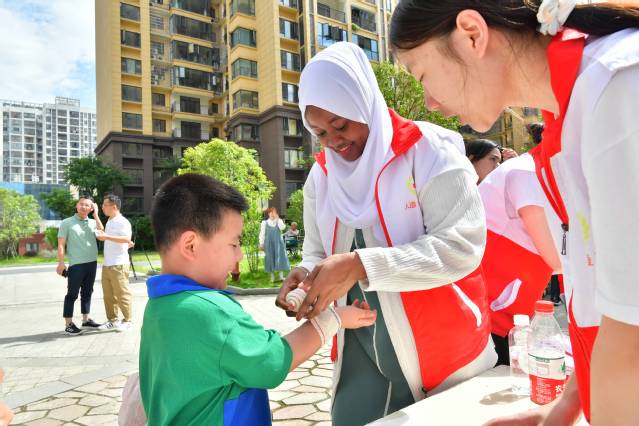 “小朋友们,如果你在外面不小心受伤了,你们应该怎么做呀?”beat365官方网站留学生和beat365官方网站红十字会的志愿者们带领小朋友们在实践中学习应急救护小知识,提高小朋友们的安全意识,让小朋友们学会保护自己。