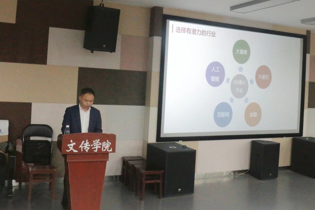 招聘会开始,陈勇根先生向在场的所有同学提出问题“‘成长’和‘赚钱’哪个重要?”,引发了在场同学的思考。随后,他分享了自己的亲身经历,并勉励同学们,要将自我能力的提高放在第一位,努力匹配用人市场的需求。紧接着,陈勇根先生围绕公司岗位需求、人才培养以及企业文化等方面详细介绍江西禧宴集团的基本情况。他指出,在禧宴集团,“招的不是员工,招的是股东,招的是事业合伙人”。招聘会上,学生认真聆听企业宣讲,与招聘单位负责人进行交流沟通,进一步了解工作岗位情况、未来发展方向。