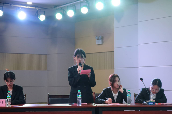 本站讯(学生记者 朱燕 李松蓉)为了增强学生的逻辑思维能力,加深学生对社会现象的思考,活跃校园文化氛围。5月22日晚七点整,政法学院于大学生活动中心的青年发展中心举办了以“凝聚青春,砥砺前行”为主题的沁湖杯辩论赛决赛,政法学院副教授邹建辉、思鸣辩论协会指导老师陈淑文、政法学院教师熊建华、宋莉娜出席并担任本次活动的评委,八位辩手及22级全体学生到场参加。本次活动由庄晓东同学主持。