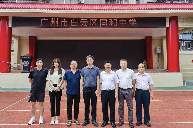 张海帆一行走访了广州市白云区同和中学,在校友曾国如的带领下参观学校,与校领导班子进行了会谈交流,详细了解学校的办学理念、师资配备、教学特色等情况。双方就人才培养、实习就业等工作进行深入交流,会后签订了就业基地协议书。