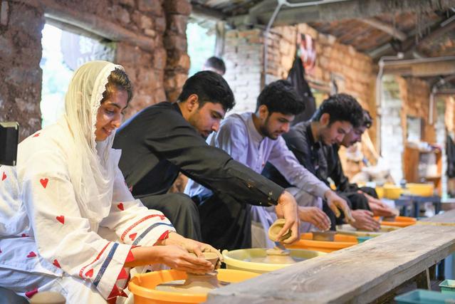 留学生现场学习拉坯等制陶技艺