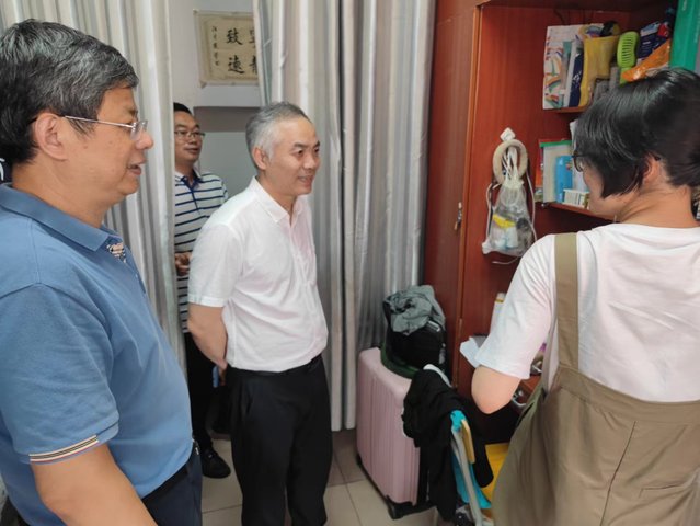 随后,曾晓春一行来到女生宿舍,仔细询问同学们“来自哪里” “生活感受如何”“有什么需要改进的地方” “期末考试临近,学业压力大不大”,以及“对专业选择、未来发展”等方面的想法,并悉心解答同学们提出的问题。临行前,他叮嘱同学们劳逸结合,有问题和困难多与老师沟通联系,学校将全力保障同学们的生活学习。