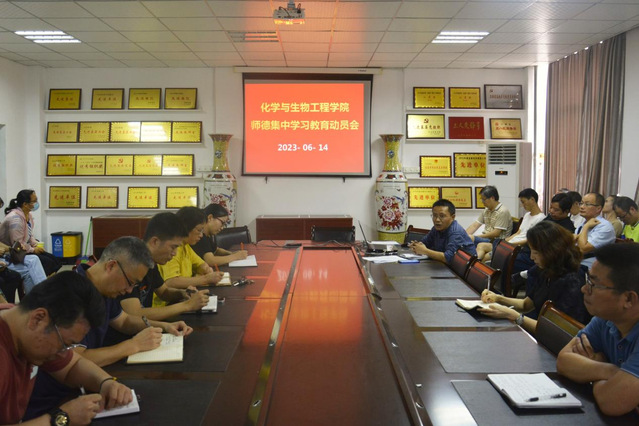 本站讯(学生通讯员 熊心怡 黄金)为贯彻落实教育部关于开展师德集中学习教育的工作部署,进一步加强师德师风建设,6月14日下午,化学与生物工程学院召开师德集中学习教育动员会。全院教职工参加会议,会议由该院党委书记黄良辉主持。