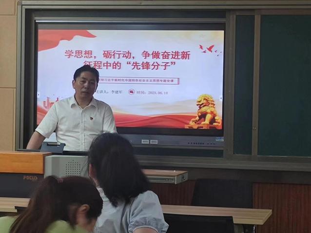 课上,李建军紧扣主题教育要求,结合青年学生特点,围绕“先锋分子”这一关键词开展讲述。他指出,新时代青年身肩全面实现中华民族伟大复兴的历史使命,是祖国的明天和希望。新时代青年尤需牢记习近平总书记嘱托,以习近平新时代中国特色社会主义思想为指导,深刻领悟“先锋分子”的内涵要求,发挥好青年先锋作用,勇担时代赋予的历史使命,争做有理想、敢担当、能吃苦、肯奋斗的新时代青年,做让党和人民放心的新时代先锋分子。