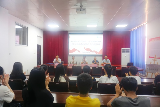本站讯(学生记者 杨佳慧 张林涛)为了提高学生创新能力,提供实践平台,6月7日下午,经济与管理学院与江西禧宴集团于人文楼党员活动室举办实习就业基地签约与授牌仪式。该院院长熊珍琴与江西禧宴集团营销副总郑希团等人出席本次仪式。