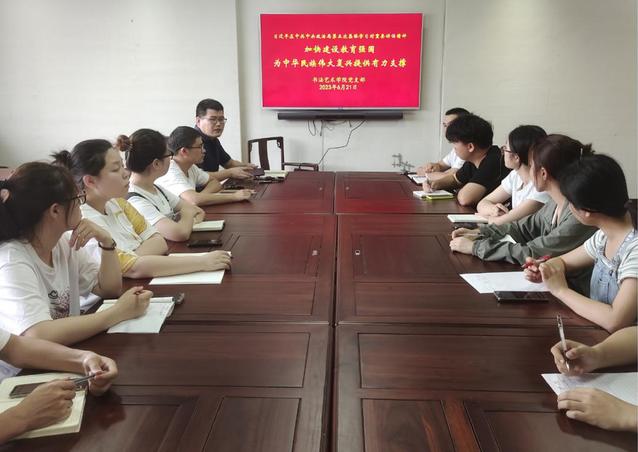本站讯(书法艺术学院 供稿)6月21日下午,书法艺术学院党支部在科技楼202室组织学习贯彻习近平总书记在中央政治局第五次集体学习时的重要讲话精神。