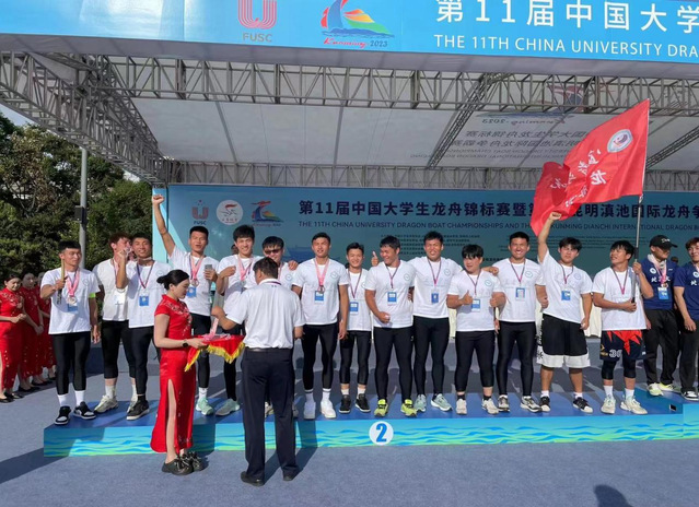 本站讯(学生记者 周成庚 罗圣鹏)挥桨竞渡,“逐浪”滇池。6月16日—17日,端午月的开始,第11届中国大学生龙舟锦标赛暨第二届昆明滇池国际龙舟争霸赛在昆明滇池海埂大坝圆满落幕。来自全国各地39所高校,77支队伍参加了本次比赛。beat365官方网站龙舟队参加了本次比赛的高校男子丙B100米、200米和500米三个项目。经过2天激烈的角逐,队员们齐心协作、奋勇拼博,最后取得了100米第二名、200米第二、500米第二名的好成绩。