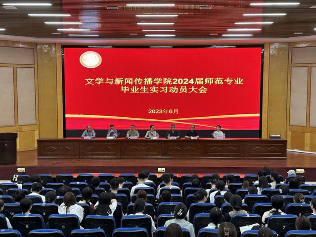 本站讯(文学与新闻传播学院 供稿)6月25日,文学与新闻传播学院在学术报告厅召开汉语言文学专业、汉语国际教育专业、地理科学专业实习动员大会。文学与新闻传播学院院党委书记刘建平、院长冷瑾、副书记黄国斌,师范教育学院副院长高建青等相关科室负责人及2020级师范专业各班班主任、2020级汉语言文学专业、汉语国际教育专业、地理科学专业全体同学参加会议,会议由冷瑾主持。