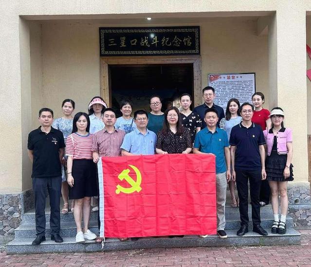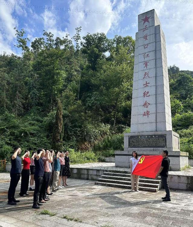 随后大家驱车到三星村参观了三星口战役旧址及瞻仰烈士纪念碑。在烈士纪念碑前大家重温入党誓词,面对鲜红的党旗,全体党员一起高举右手,再次庄严宣誓。“我志愿加入中国共产党……随时准备为党和人民牺牲一切,永不叛党。”铿锵恢宏的誓词,强烈震撼着在场的每一位党员,一字一句,神圣而豪迈,体现了党员同志们对中国共产党的无限忠诚。