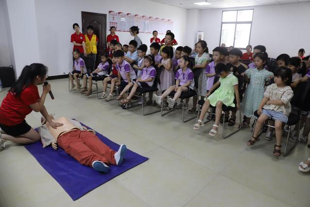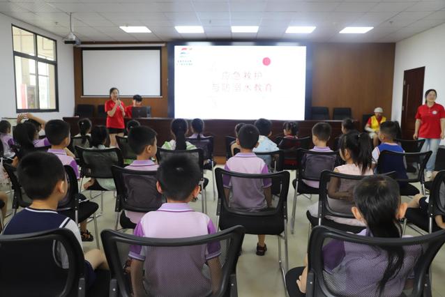 “最近天气是不是特别热?”“是!”“大家想不想去痛痛快快的游个泳?”“想”……随着这一问一答,实践团成员王静将同学们的注意力集中到这一堂科普课堂中,将生动的案例、应急救护与防溺水动画视频与“四个牢记”“六个不准”安全知识教育牢牢结合,将“不做孤‘泳’者”的安全意识播洒在孩子们的心田上。同时就急救重要性、急救基础知识、心肺复苏技术等进行讲解和示范,并现场模拟示范心肺复苏等基本技能。紧接着,实践团成员黄浦政用风趣幽默的语言为孩子们深入浅出地讲解了性与健康知识科普,教育孩子们不接受陌生人的食物,要保护好自己的隐私,勇于对他人的触碰说不。