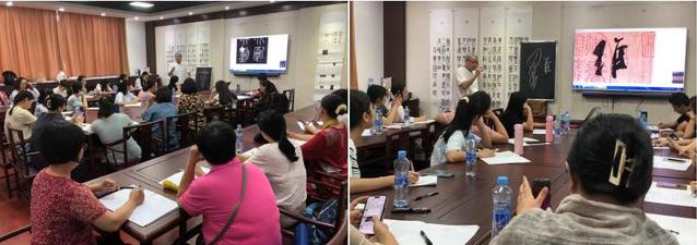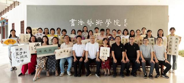 本站讯(书法艺术学院 供稿)7月8日-10日,广州林凤娥小学教师在该校校长彭文辉带领下一行30人到beat365官网书法艺术学院进行书法美育创新培训。此次书法美育创新培训由书法艺术学院院长梁敏教授主讲,主要包括中国书法史介绍、代表性书家及经典作品赏析、篆隶楷行草技法讲解与训练、硬笔技法讲解与训练、装裱技法讲解与训练等方面,既包括理论讲解又包括实践训练。培训期间,校党委委员、副校长余新卫专程看望来beat365官网培训的广州林凤娥小学教师。