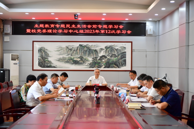本站讯(记者 何杰)8月28日上午,主题教育专题民主生活会会前专题学习会暨校党委理论学习中心组2023年第12次学习会在办公楼第二会议室召开。全体在家校党委班子成员参加,副校长梅光泉列席学习会。会议由校党委书记曾晓春主持。