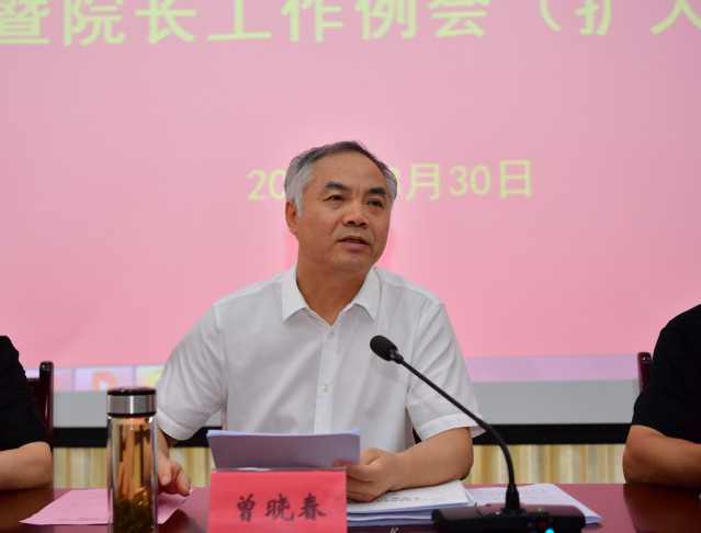 本站讯(记者 何杰)8月30日上午,学校在办公楼第三会议室召开基层书记例会暨院长工作例会(扩大)会议,全体在家校领导出席会议,各教学院党委书记、院长和校直各部门(单位)主要负责人参加会议。会议由校党委书记、校长曾晓春主持。