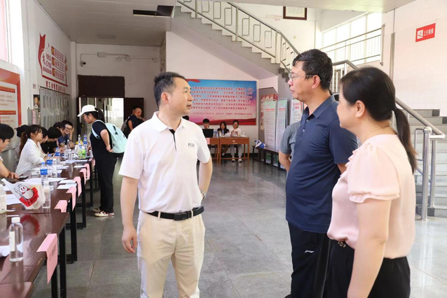 本站讯(学生记者 宋子康)时维九月,天朗气清,夏热退去,金秋踏至,又到一个迎新日。9月1日,物理科学与工程技术学院2023级新生有序来校报道。校党委委员、副校长严青松到理工楼大厅检查指导迎新工作,了解新生报到情况,并慰问迎新工作人员,该院党委书记张海帆、院长谢芳、学生事务办公室副主任彭勃陪同。