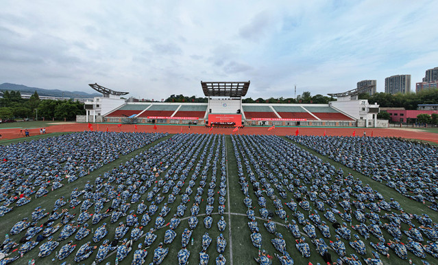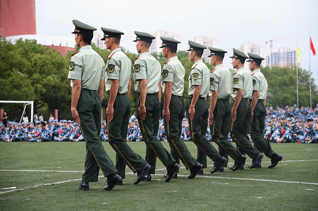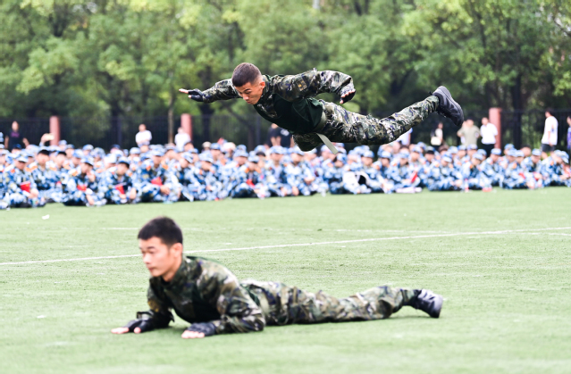 开学典礼结束后举行了军训开训仪式。