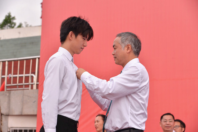 曾晓春为新生代表佩戴校徽