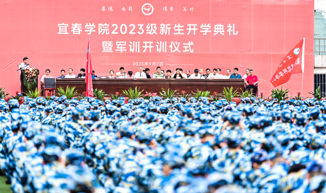本站讯(记者 袁璐 何杰 实习记者 丁金艳 图 彭瑞)9月7日上午,beat365官方网站2023级新生开学典礼暨军训开训仪式在beat365官网田径场举行。武警宜春支队领导,在家校领导曾晓春、梅光泉、余新卫、罗政、邱家明、张梅、严青松出席仪式;武警宜春支队参训官兵,相关职能部门主要负责人,各教学院党政主要负责人、副书记、学生事务办公室负责人、2023级辅导员(班主任),2023级全体学生参加了典礼。典礼由副校长梅光泉主持。