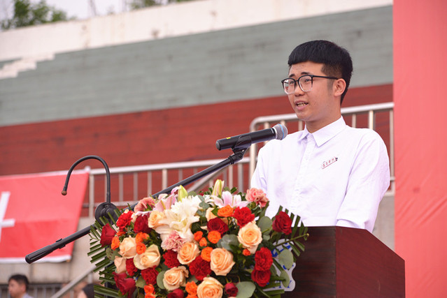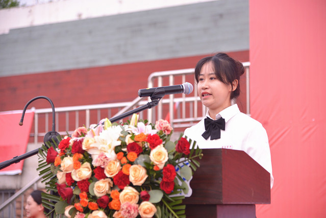 教师代表外国语学院郑莹、老生代表美容医学院2022级临床医学专业吴祎曼、研究生新生代表2023级药学专业刘佳艺、新生代表政法学院2023级法学专业李笑冰先后发言。