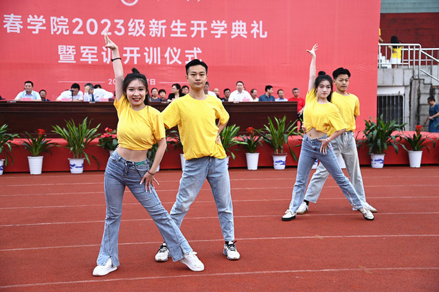 典礼仪式开始前,现场进行了暖场表演。音乐与舞蹈学院学生用歌声和舞蹈倾诉青年学子接续奋斗的心声;体育学院学生以啦啦操和体育舞蹈展现中国青年勇立潮头的风采;师生合唱《我和我的祖国》,在同频共振中表达对祖国的挚爱和对美好生活的向往。